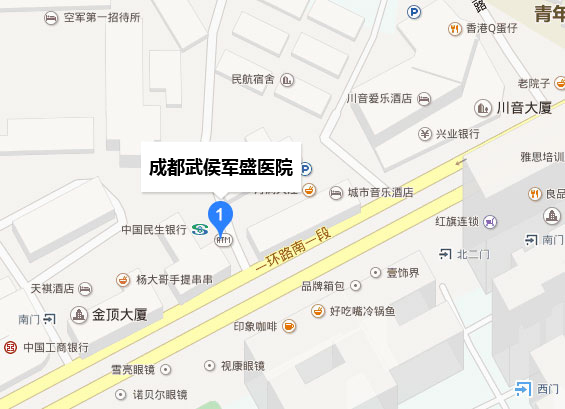 地铁1号线:火车北站——地铁3号线太平园方向(磨子桥站下车A口出,向东南方向步行600米即可看到成都武侯军盛癫痫医院)(原川音大厦旁)